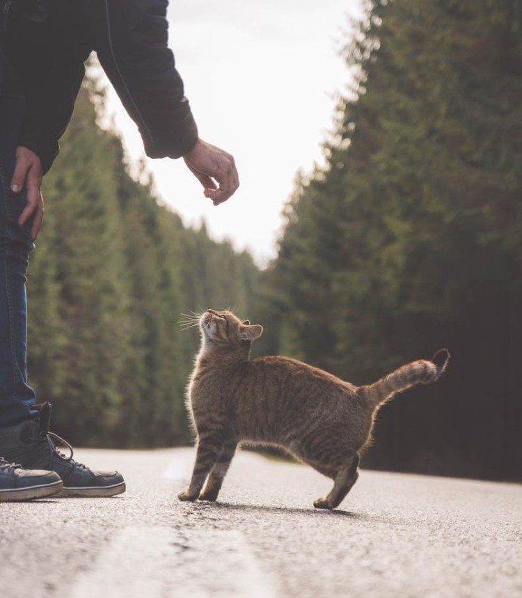 “Here, kitty, kitty. Poor kitty,” he would say as he sprinkled food over the ground for the feral horde. I was a little girl then, but I saw his compassion as he watched the cats pop up one by one about the same time every day, tentatively, slowly, scared. “Poor kitty.” He stooped down in well-worn dress shoes, their shine lost long ago from the dust, years, and small-town poverty, to hold out a hand to a cat at once wanting to approach but too frightened at the same time. This was long before rescues were fashionable and the good graces of people like my grandfather were where these starving cats turned for help.